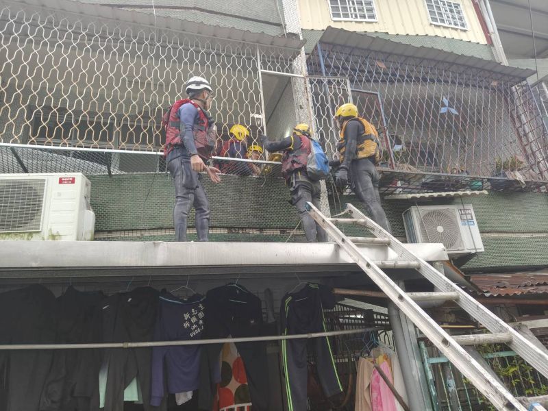 救災人員救出敦厚路受困民眾。(照片/宜蘭縣消防局提供)。
