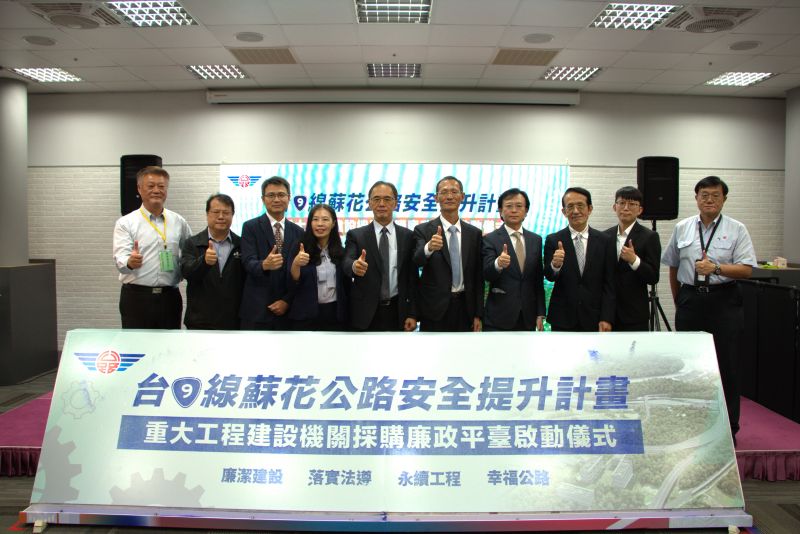 公路局蘇花改工程處今(22)日下午在宜蘭縣蘇澳安永心食館舉辦「台9線蘇花公路安全提升計畫」重大工程建設機關採購廉政平臺啟動儀式。今日與會嘉賓眾多,包括公路局林福山局長、法務部廉政署林炤宏副署長、宜蘭地檢署王以文檢察長、花蓮地檢署陳佳秀檢察長、交通部政風處王永福處長、調查局宜蘭縣調查站王重陽主任、花蓮縣調查站蔡佳昇調查官等機關代表以及台灣世曦工程顧問股份有限公司林聰能副總經理、中興工程顧問股份有限公司王建智副總經理與蘇改處李宗仁處長等人,並共同宣示廉政平臺正式啟動。