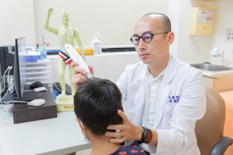 蔡一成主任指出,雷射針灸是結合中醫經絡理論與現代光能科技的新型療法。透過低能量雷射照射特定穴位,能刺激頭部與腦部相關經絡,達到安神、穩定情緒、提升專注力的效果,與傳統針灸不同,雷射針灸不需針刺、無痛無創口,非常適合怕針的兒童,治療時僅有溫和的光照感受。