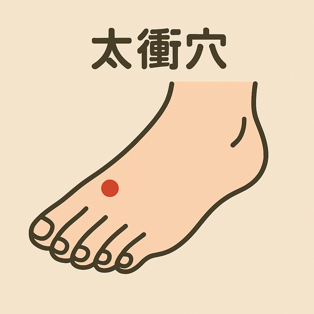 - 太衝穴(腳背第一、二趾骨間):舒緩焦躁、穩定情緒。
