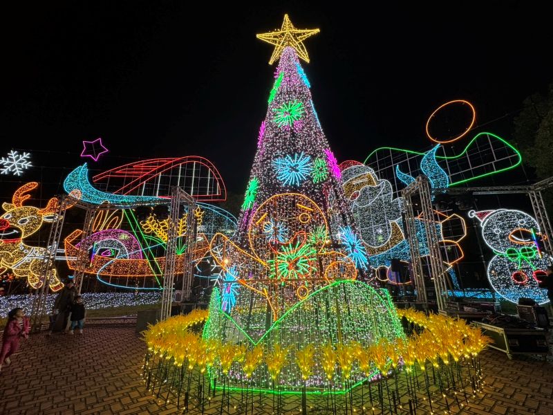 叮叮噹 !叮叮噹 !鈴聲多響亮 ! 一年一度的聖誕節即將來臨,「2025蘭陽越夜越美麗~蘭陽歡樂迎耶誕」燈飾裝置在今(27)日晚上正式點燈!今年縣府與議會再次攜手合作,以冬山河品牌「心咚山河」為主題,打造8.5公尺泡湯耶誕老人、麋鹿牽引冬山河鴨母船、12公尺稻米與穗花棋盤腳主題耶誕樹等宜蘭意象燈飾;議會前方亦設置全新耶誕樹與薑餅人燈景,並以段木香菇、金棗、三星蔥等農特產打造入口意象,呈現濃厚蘭陽風情。燈飾展示時間:自114年11月27日起至115年3月3日止,每晚5:00-10:00,以繽紛多彩的燈光裝置藝術,歡迎民眾前往欣賞享受溫馨愉快的佳節。