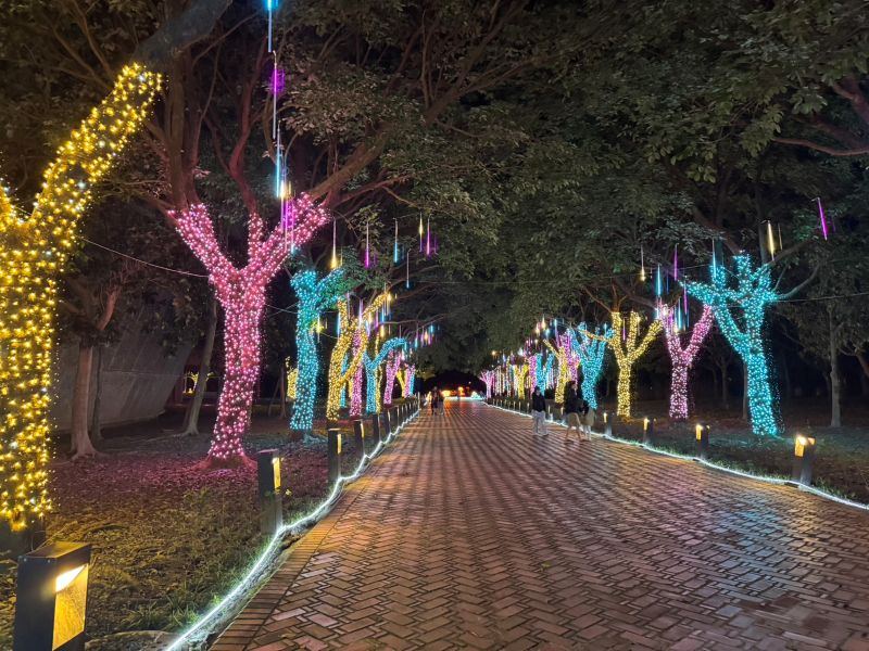 燈飾展示地點在宜蘭縣議會紅磚道暨宜蘭縣議會門口,展示時間:自114年11月27日起至115年3月3日止,每晚5:00-10:00。(照片/記者邱淑珍攝)。