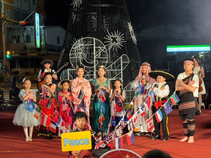 今年宜蘭縣政府再度攜手宜蘭縣基督徒聯禱會及社團法人宜蘭縣全福關懷協會,共同推出「2025愛在聖誕.愛在宜蘭」系列活動,並於今晚於宜蘭縣議會紅磚廣場舉行。點燈演出由「蘇澳岳明國中小—M&Ocean」擔綱,以歌曲〈Heal the World〉結合手語、踢踏舞與rap呈現孩子們對「愛地球、要和平、挺台灣」的想望,象徵以音樂向世界傳遞愛與溫暖;此外還邀請詩歌班溫馨獻唱及祝福禱告。