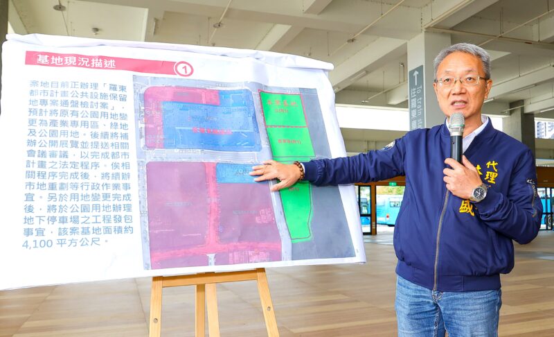 因此宜蘭縣政府刻正辦理「羅東都市計畫公共設施保留地專案通盤檢討案」,預計將原有公園用地變更為產業專用區、綠地及公園用地。這個案擬利用公園用地(約4,100平方公尺)規劃興建地下二層停車場,預估可提供130席汽車及700席機車停車空間。計畫預定於115-116年辦理規劃設計,並於116年爭取經費後,預計於116年底辦理工程施作,總工程經費預計約5億元。