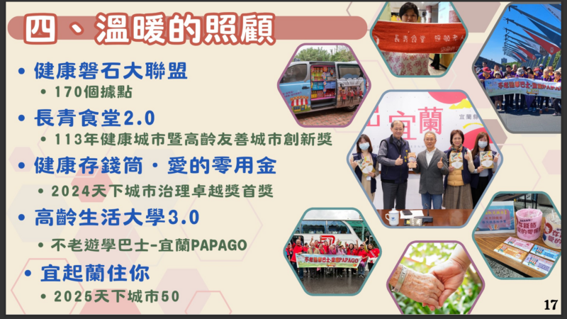 全齡人才的關懷,是縣府責無旁貸的使命,從兒童、產婦到長者,持續打造更友善、更有溫度的生活支持體系,營養午餐3.0、長照食堂2.0、高齡生活3.0、連續3年調升生育津貼,我們用心精進,守護每一個年齡層的幸福。