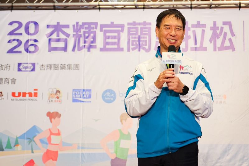「2026杏輝宜蘭馬拉松」是宜蘭縣政府與杏輝醫藥攜手合作的年度體育盛事,今年選在氣候宜人的春季舉行,時間訂在4月11日(星期六),地點於宜蘭運動公園田徑場。今(6)日上午11時在縣府大廳舉行記者會,開場由宜蘭大洲國小醒獅戰鼓團帶來震撼演出,以齊鳴的鼓聲象徵春季甦醒,正式揭開賽事序幕。