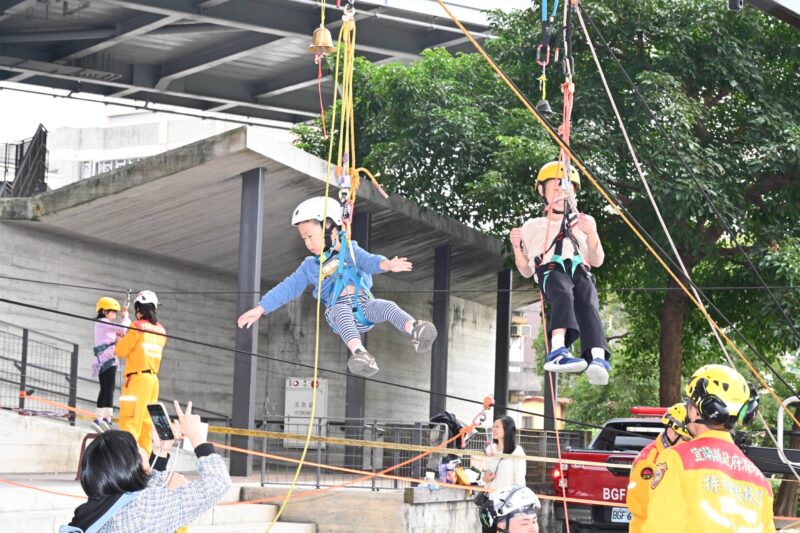 另外現場還有提供消防繩索救援體驗、雲梯車搭乘、消防瞄子射水、小型空拍機模型供民眾操作及電腦模擬飛行體驗,參加小朋友都流連忘返,覺得空拍機體驗好玩又有趣,並且讓民眾瞭解空拍機偵測災害現場後,提供救災資訊給現場救災人員,讓災害事故指揮搶救事半功倍。