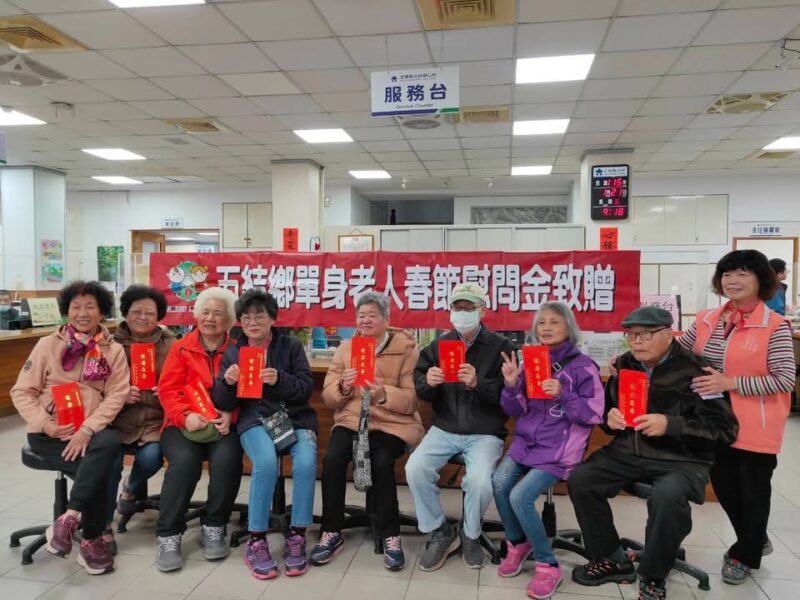 宜蘭縣五結鄉公所為關心鄉內2,426位高齡單身長者,將於115年1月26日起,辦理單身老人春節慰問金發放,凡年滿70歲以上(44年12月31日〈含〉前出生)之喪偶、離婚、未婚的長者,每人發給新臺幣500元整慰問金。
