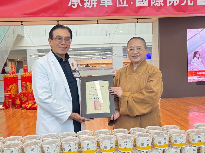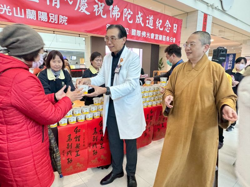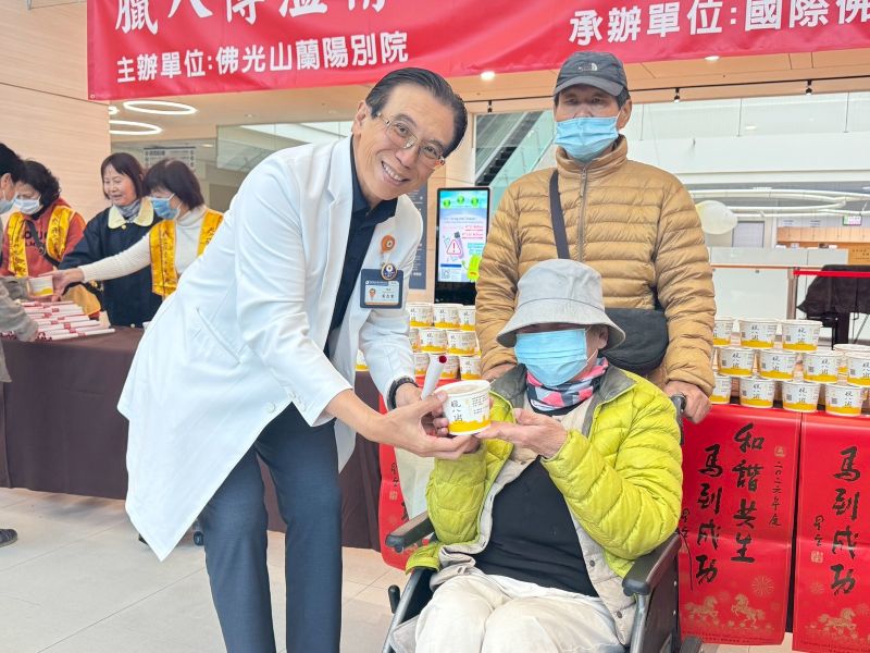 又到了最溫暖的臘八節時刻,宜蘭佛光山蘭陽別院今(22)日至陽明交大醫院蘭陽院區一樓大廳共同辦理「臘八贈粥 馬上暖心」贈粥活動,由妙勤住持親送臘八粥,並由黃志賢院長代表醫護團隊受贈,讓病患、家屬及全院同仁都能法喜充滿、平安吉祥。