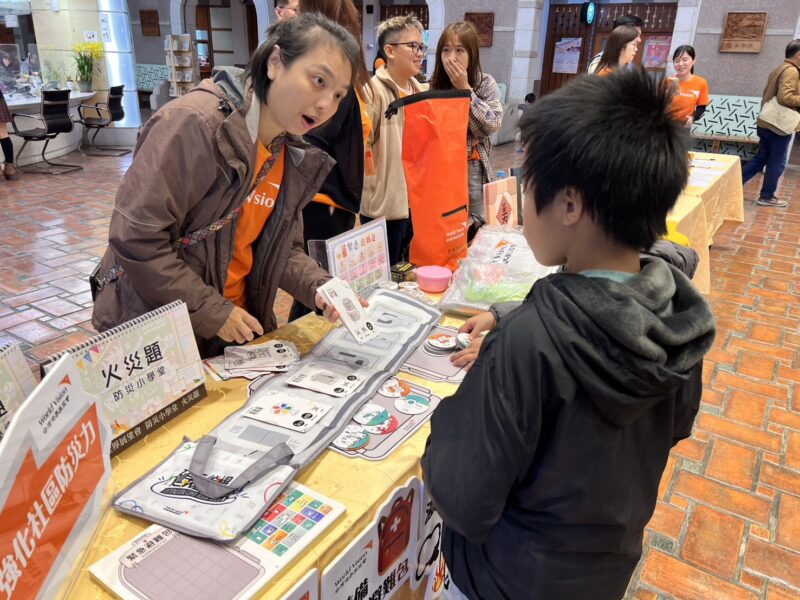 今日活動現場並設有展望會攤位介紹「緊急救援服務工作」及「家庭培力方案」,幫助民眾了解遇到災害時的應對方式與防災重要知識,同時亦展售由展望會培力家長手作的皮革鑰匙圈、布作紅包袋、束口袋等精美作品。參與培力課程的婷婷媽媽分享,自己從最初的侷促不安,到透過手作找回自信與笑容,讓她對未來充滿了新的期待與可能。