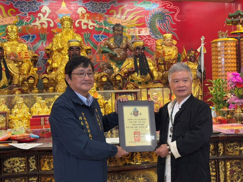 『金福德財神銀行』行長林祥旺主委頒發聘書給太上混元們高義順老師(右)。(照片/記者邱淑珍攝)。