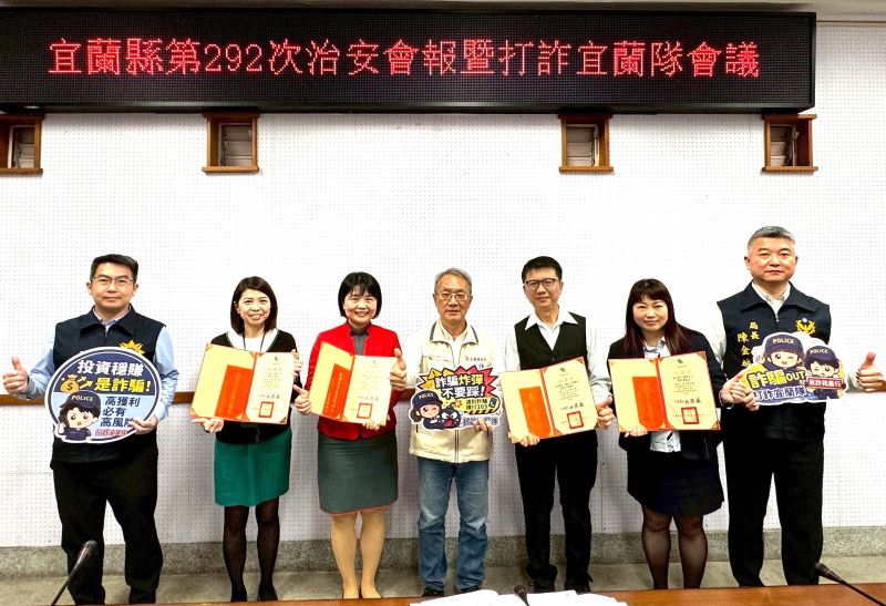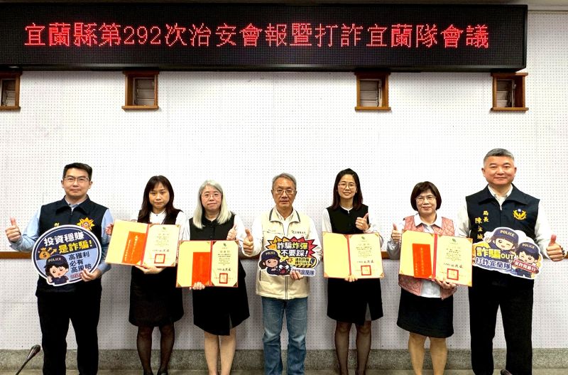 為感謝金融機構積極攔阻詐騙案件,宜蘭縣代理縣長林茂盛今(24)日藉由治安會報表揚機警行員之義行,並頒發感謝狀予有功人員,期望透過公開表揚方式,強化全民打擊詐欺犯罪信心,暢通警民良好之通報機制。