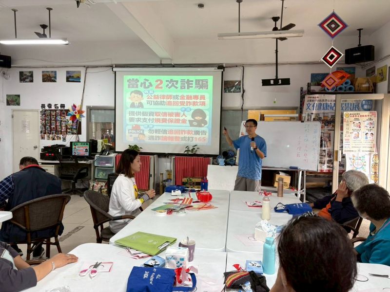 活動一開始便以生活化案例破題,提醒長者常見詐騙手法,包括假冒公務機關來電、假投資高獲利話術、假親友急難借款等情境,並以淺顯易懂的方式說明「三不原則」——不聽信、不匯款、不透露個資,讓長者直呼「原來詐騙這麼多花樣!」現場也特別分享真實案例,強化記憶點,讓防詐觀念更深植人心。