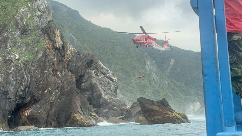 65歲女登山客攀登烏岩角不慎而墜落礁岩受傷待救。(照片/宜蘭縣消防局提供)。